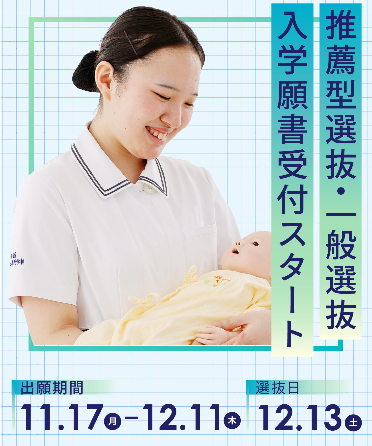 2026年4月入学 12月選抜の出願を開始します。