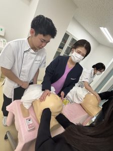 妊婦さんのお腹を触ってみたり、胎児の心音も聞いてみました。